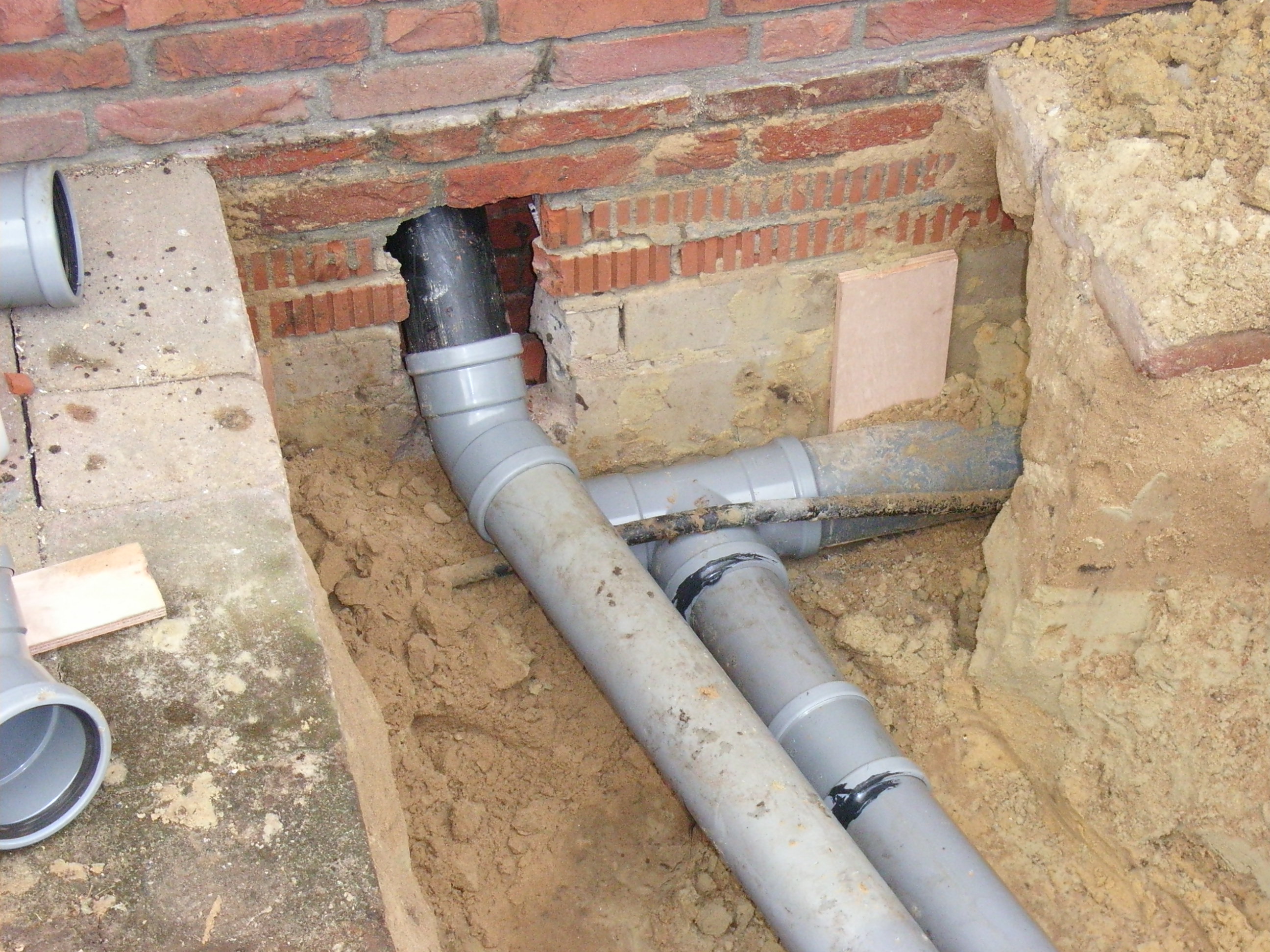 De vuilwater afvoer op het riool aangesloten en natuurlijk