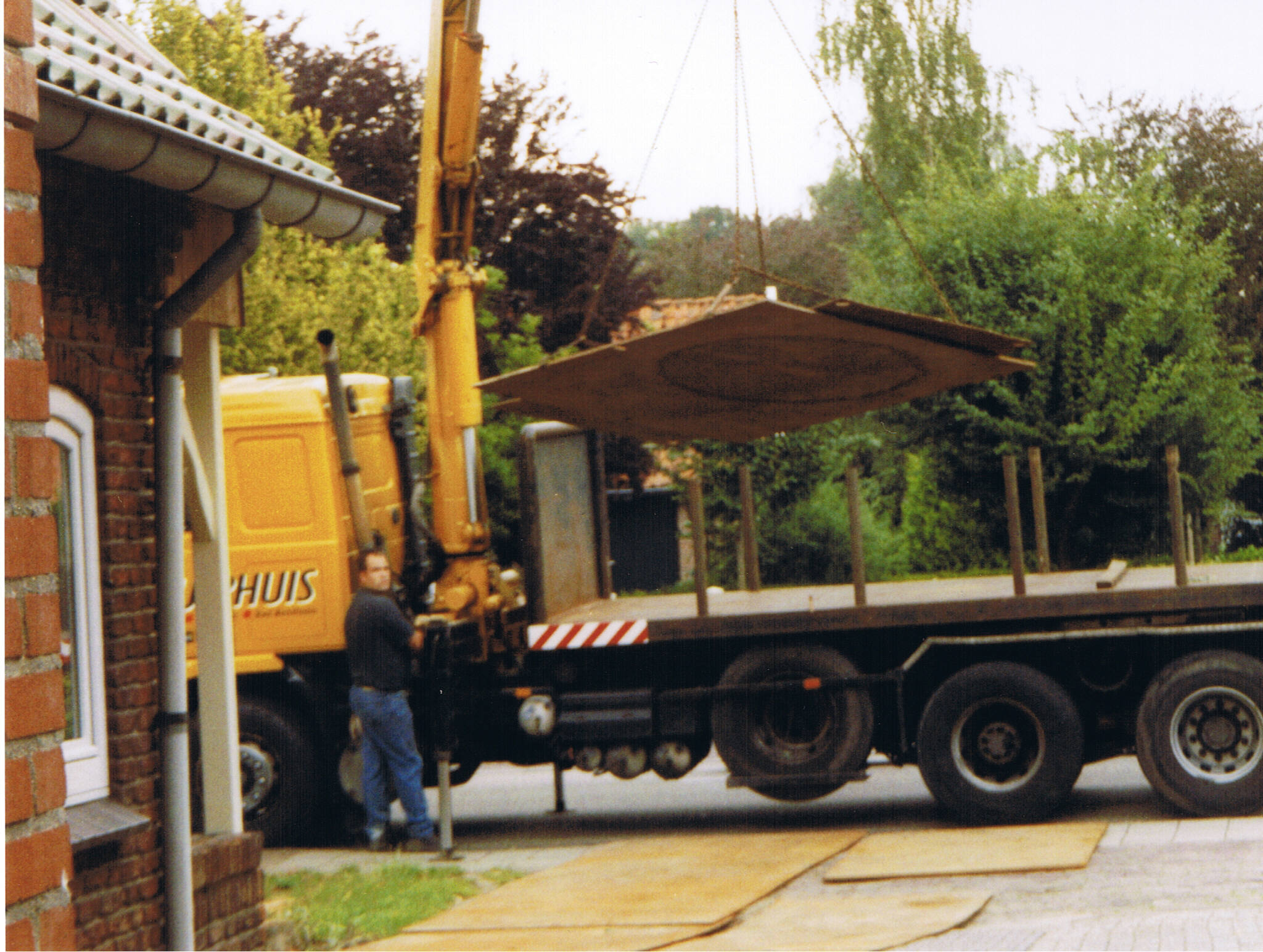 Hierna zijn we met de graafwerkzaamheden begonnen en hebben het zand met de spierings kraan over het huis afgevoerd in vrachtwagens. Nog speciaal dank voor Kuiphuis kraanverhuur uit Oldenzaal en Wiefferink loon en grondverzet uit Denekamp voor hun grote inzet en vakkundigheid