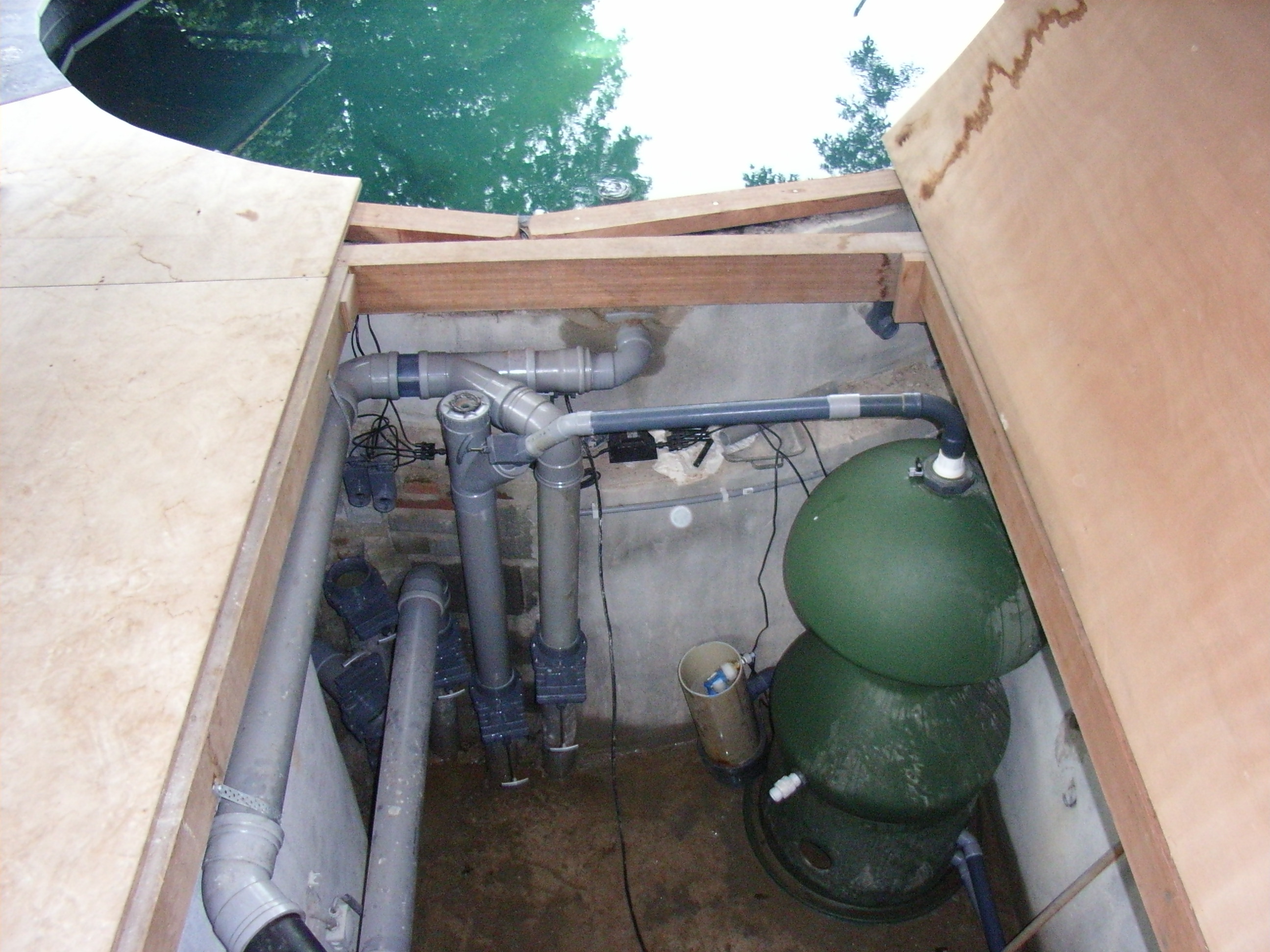 We hebben gelijk de filterput meegestort omdat deze pal naast de vijver ligt